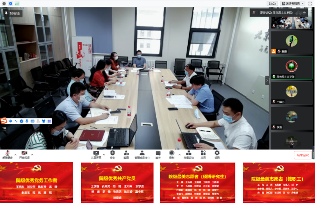 大会在激昂奋进的国歌声中拉开序幕。党委副书记、副院长刘宇宣读了《中共best365官方网站登录入口委员会关于表彰best365官方网站登录入口先进党组织、优秀共产党员、优秀党务工作者的决定》( 北理工党委发〔2021〕22号)、《best365官方网站登录入口关于“七一”评优表彰的决定》(马院党〔2022〕9号),学院共有1个先进党支部、1名优秀党务工作者和2名优秀共产党员受到学校表彰,有3个先进党支部、7名优秀党务工作者、11名优秀共产党员和42名最美志愿者受到表彰。