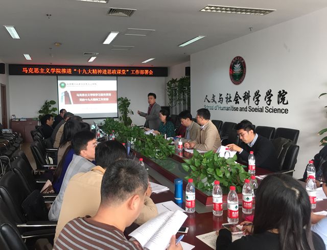 李德煌书记首先介绍了学院关于学习宣传贯彻党的十九大精神工作安排,学院计划主要围绕学习十九大报告、开设专题报告讲座、融入课堂教学工作、开展理论研究以及阐释和开展主题活动五个方面进行学习宣传工作。通过组织专题党日学习、组织专家解读报告、开展教师理论培训、积极推动党的十九大精神“进课堂、进教材、进头脑”、在各项课程中及时融入十九大精神、鼓励教职工结合自身研究领域发文发声、准备相关党课服务学校各单位党课培训要求等方面,全面发挥马院优势,积极推进学习和宣传十九大精神。