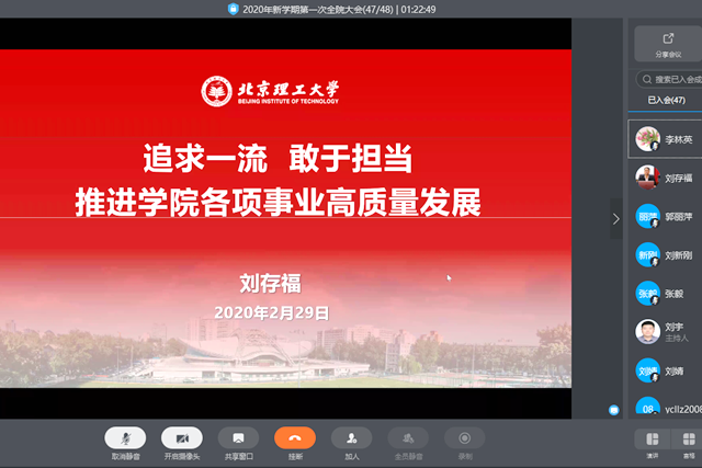 2020年2月29日上午,best365官方网站登录入口利用钉钉平台召开线上全体教职工大会。会议由党总支书记兼院长刘存福主持。