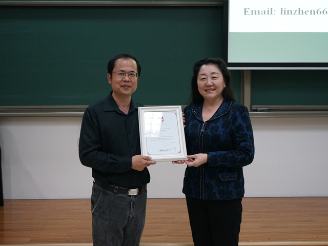讲座结束后,李林英院长向林震教授颁发了best365官方网站登录入口“百家大讲堂”纪念证书。