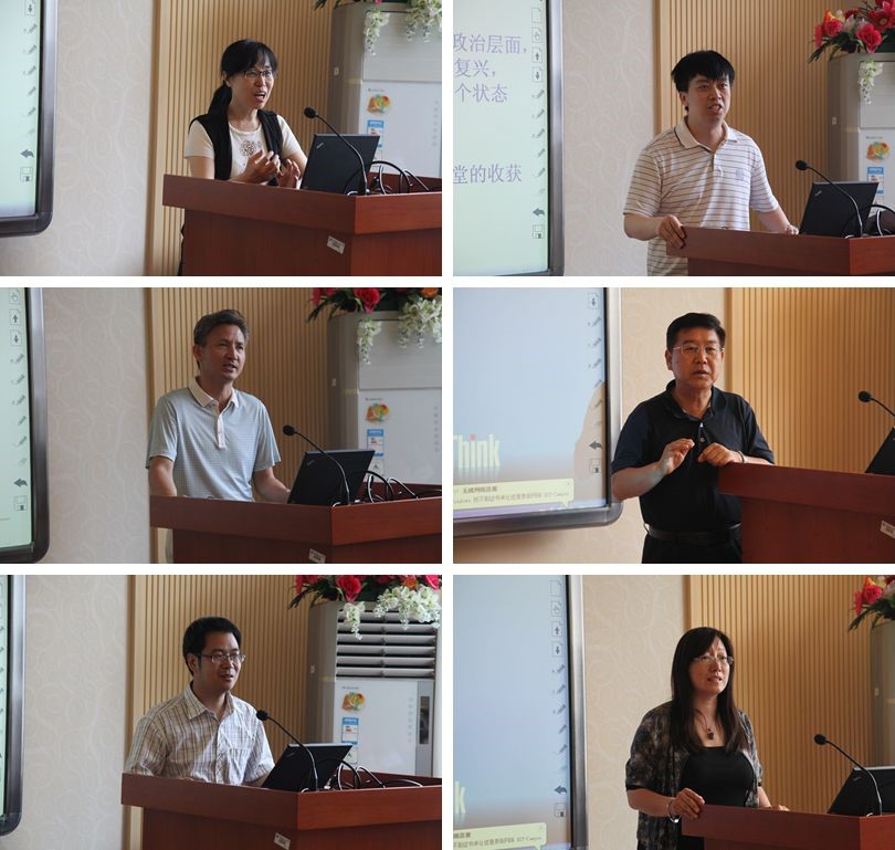 郭丽萍教授介绍了“毛泽东思想和中国特色社会主义理论体系概论”课程组课堂对于教学模式的探索,尤其对“课堂时事、播报点评、主题展示”、“结合学校特色实施教学”等两种教学模式做了强调说明。“马克思主义基本原理概论”课程负责人刘新刚副教授认为,大学课程应该与时代背景相结合,以“一条主线、三项技术、五项核心领域”为体系开展教学工作。在高校“原理”课堂上教师应给予学生一套分析社会的基本框架,在方向正确的基础上尽可能凸显教学的学术性。“中国近现代史纲要”课程负责人杨才林副教授介绍了“五个一”的实践教学探索模式,将来在“纲要”课教学中探索“四史合一”(中国近现代史、北京史、军工文化史和校史)的教学内容体系的设想。北京市教学名师张红峻教授认为,作为国家级精品课程“思想道德修养与法律基础”课程组的经验在于长期坚持“集体备课”、“信息共享”、“备学生”、“备形势”四个基本做法,思想政治理论课教师必须“一肩担两头”,即一头要肩负国家民族大义,始终坚持用社会主义的核心价值引导学生;另一头要始终将学生的健康成长作为教育教学的出发点和落脚点,要在国家意志和大学生成长需求一致性的契合点上下功夫。张亚彬老师介绍了我校硕士生“中国特色社会主义理论与实践研究”的教学情况,张峰副教授就硕士生课程“自然辩证法概论”的课程教学情况做了发言,他们就目前在研究生层次开展思政课程面临的问题与困境,两位老师从各自的角度提出了解决方法与建议,结合教师的科研课题、科研领域展开教学。贾利军就教学管理方面的问题阐述了自己的意见与看法。