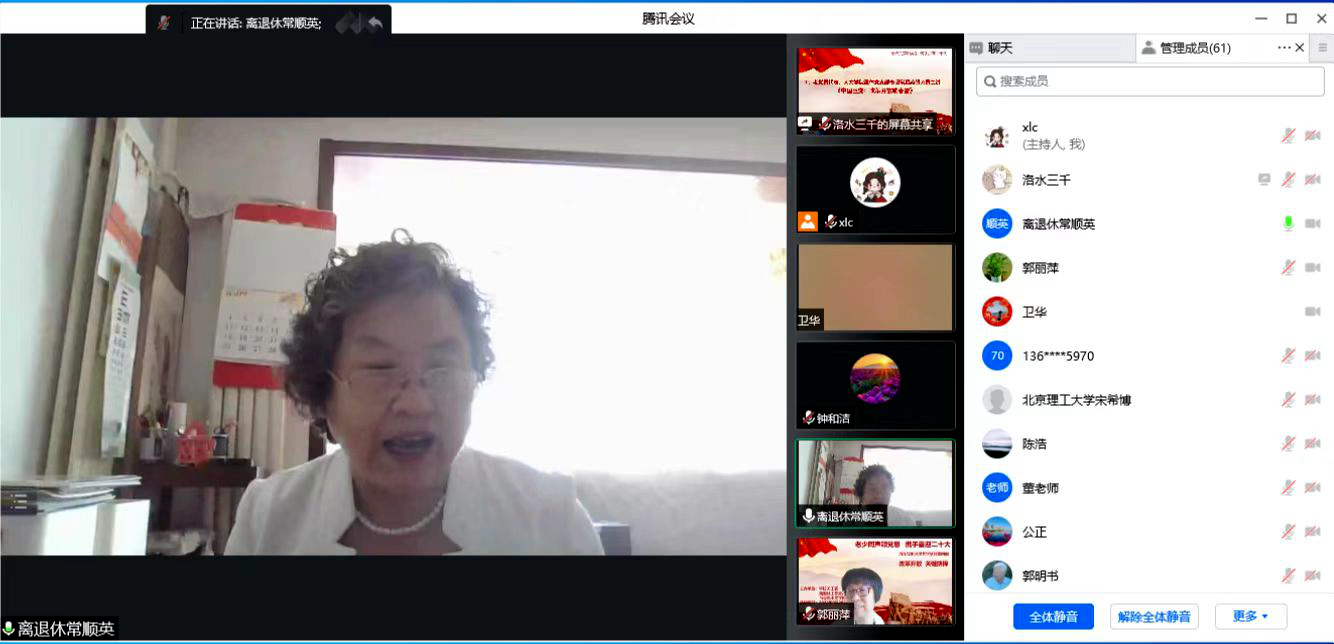老少同声颂党恩,携手喜迎二十大。2022年9月20日上午,学校关工委、best365官方网站登录入口、离退休工作处/离退休教职工党委联合开展以“‘改革开放 关键抉择’——改革开放和社会主义现代化新时期”为主题的第四期“百年党史老少共学”系列线上活动。学校关工委副主任刘淑艳,专职委员张敬袖,离退休工作处处长宋希博,学校关工委秘书长、离退休教职工党委书记邹锐,best365官方网站登录入口副院长江大伟等领导,离退休老党员、老教师和best365官方网站登录入口师生近100人参加活动。活动由best365官方网站登录入口郭丽萍教授主持。