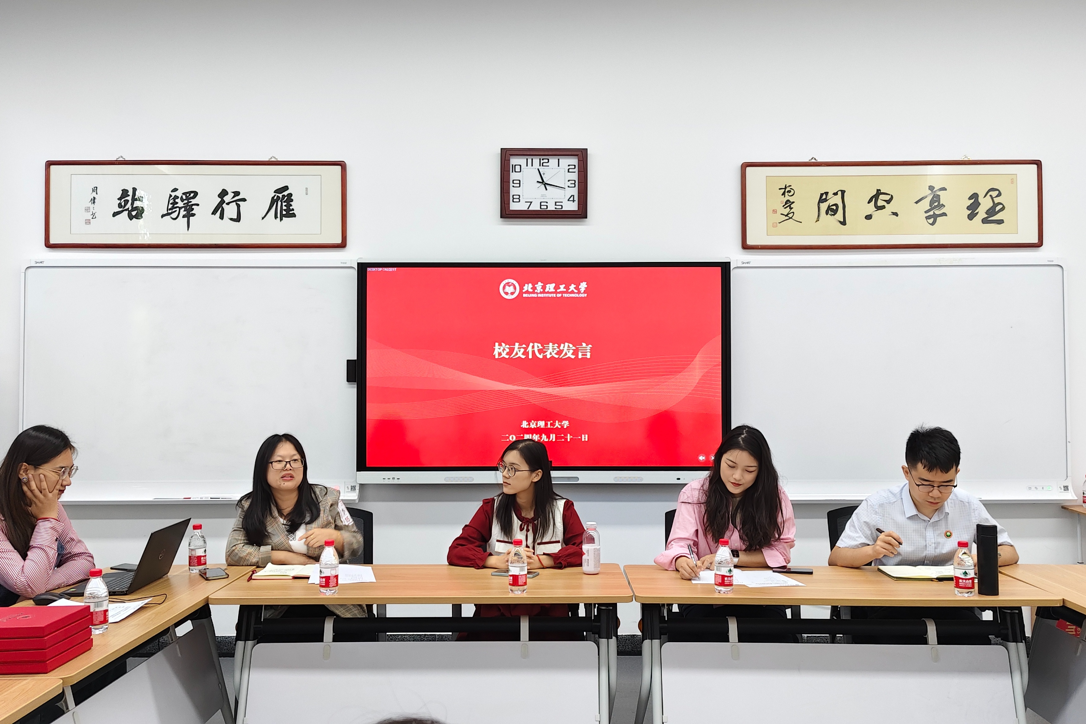 导师代表郭丽萍、莫小丽在发言中分享了自己与学生的相处故事,表达了对校友们学有所成的欣慰,并送上了真挚的祝福。她们指出:纪念活动形成了学院和校友的情感维系,母校像树根一样,不断为学生输送养分,学校的这颗根越来越好,越来越深,长出的树就越来越繁茂。希望校友们用实际行动践行北理工“德以明理,学以精工”的校训,坚持理论与实践相结合,为学院、学校以及国家做出自己的贡献。